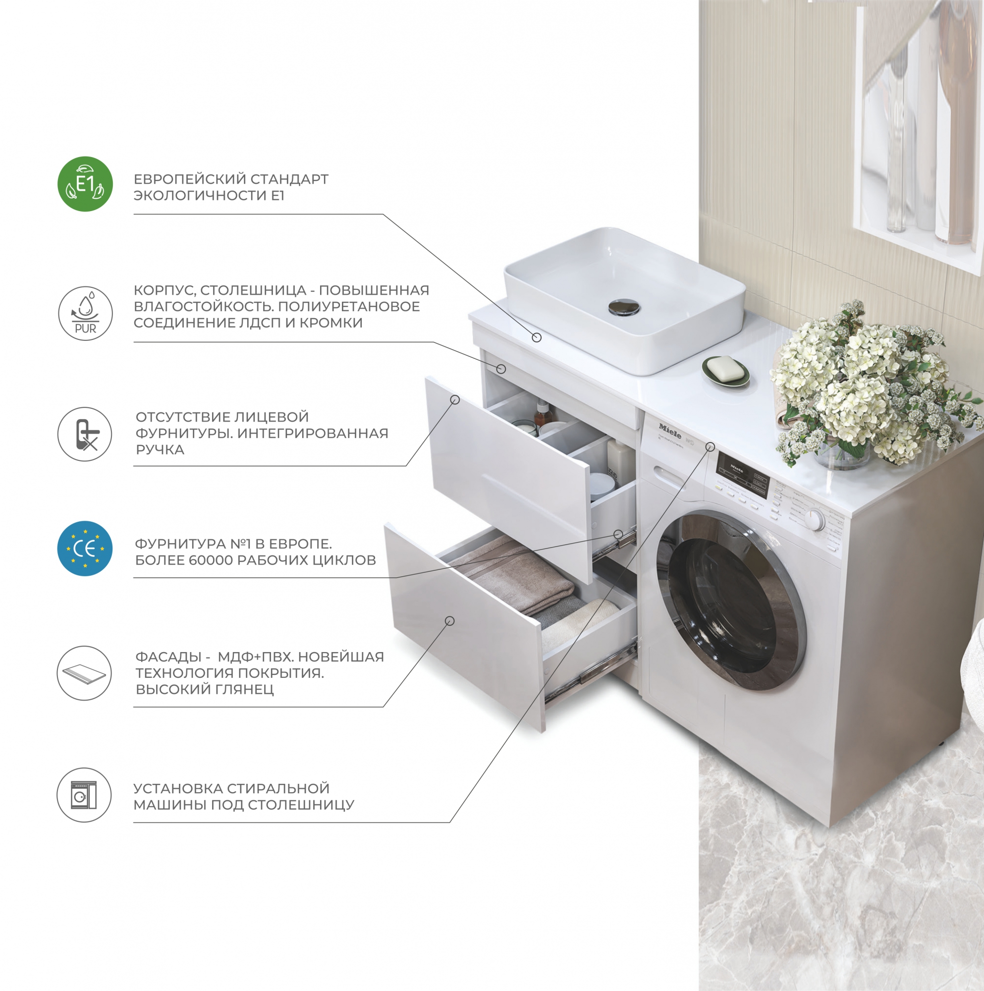 Инструкция для товара Тумба с раковиной Vigo Даллас 600-0-2 120 белый глянец для стиральной машины R